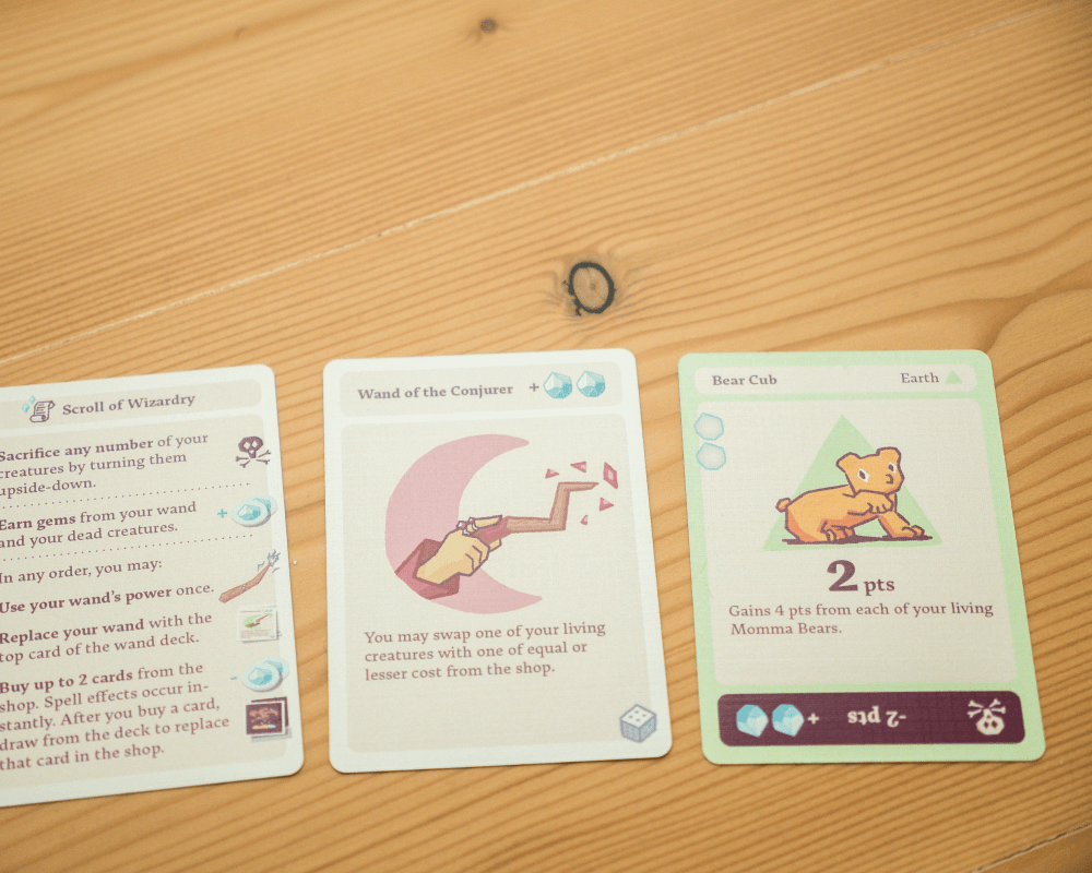 In this casual card game, you’re a wizard using sorcery to summon creatures more powerful than those of your opponents. But to create life, you must take life - you’ll need to make sacrifices in order to earn enough gems to summon the most magical beasts. In the end, the wizard with the highest score wins!